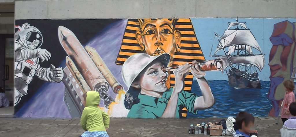 Ofertamos además de muralismo publicitario, cursos, actividades guiadas, talleres y murales participativos con los que hemos obtenido buenas respuestas de aprendizaje y diversión en el ámbito educativo.